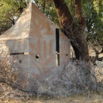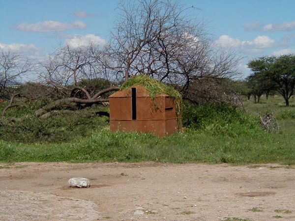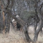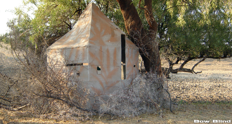 The majority of bowhunting certainly takes place from strategically positioned bow hunting blinds, ground hides and elevated stands near waterholes and salt licks which is usually the preferred method during the drier winter months, June to August and the early spring months, September to mid-October. Our moveable bowhunting blinds are constructed specifically for bow hunting, they are very comfortable, have enough room for 3 people and you can stand up in them to bow hunt. The bow blinds are placed in relationship to the waterholes and salt licks to put the bowhunter as close to the relaxed and unaware game as possible. Shooting distances range from 10 to 40 yards (10 to 40 meters).